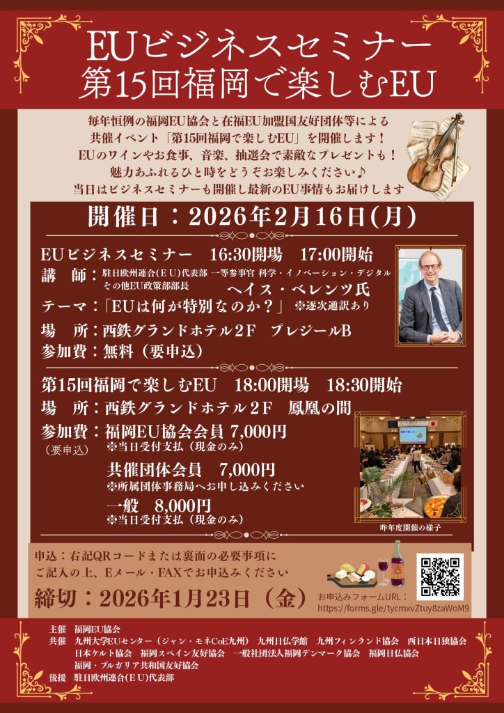 【参加者募集】福岡EU協会主催 EUビジネスセミナーおよび「第15回福岡で楽しむEU」を開催します!